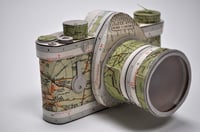 Decorative SLR camera, handmade from stitched vintage recycled papers or maps*. These can also be made from your own papers, photographs or love letters.